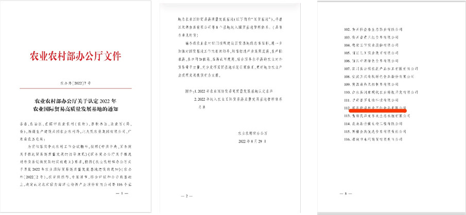 酒泉敦煌種業(yè)百佳食品有限公司被農(nóng)業(yè)農(nóng)村部認定為2022年農(nóng)業(yè)國際貿易高質量發(fā)展基地